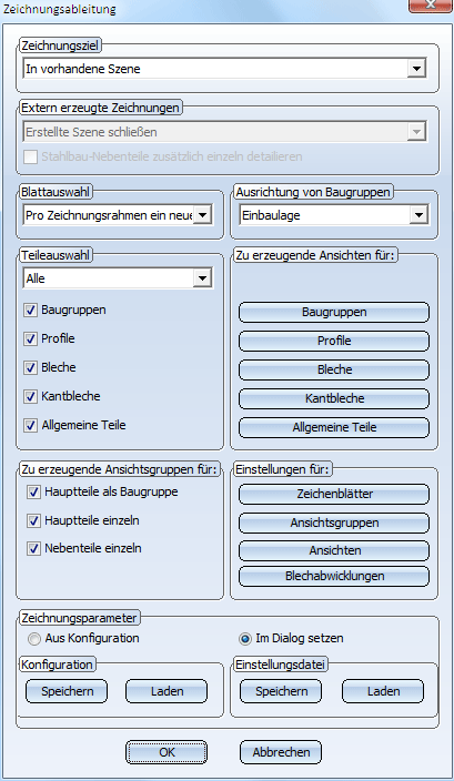Die Einstellungen für die Zeichnungsableitung erfolgen über das Dialogfenster Zeichnungsableitung.