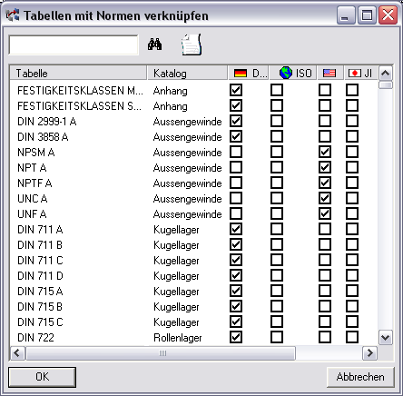 Mit dieser Funktion lassen sich Tabellen einer Norm zuordnen und neue Normen definieren.