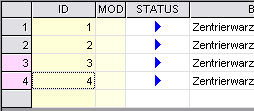 Im Katalogeditor sind alle Einträge, die eine Zuordnung zu einem HELiOS-Teilestamm haben, farbig markiert - im abgebildeten Beispiel sind dies die Zeilen 3 und 4.
