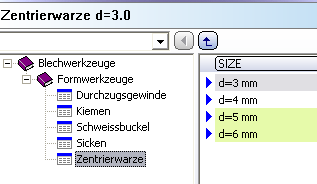 Auch beim Einbau der entsprechenden Normteile in HiCAD, sind diese im Auswahlfenster farbig (gelbgrün) markiert.
