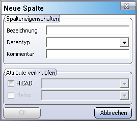 Die neue Spalte wird am Ende der Tabelle angefügt. Spalten mit einer Attributverknüpfung erhalten als Kennzeichnung das Symbol
