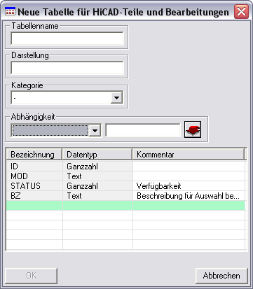 In diesem Fall können Sie bei der Definition neuer Tabellen eine Kategorie