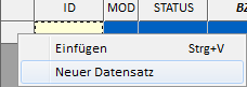 Haben Sie alle erforderlichen Spalten definiert, dann legen Sie für jede Ausprägung der Variante einen neuen Datensatz an. Dazu klicken sie mit der rechten Maustaste auf die 1. (leere) Spalte der Tabelle und wählen die Funktion Neuer Datensatz.