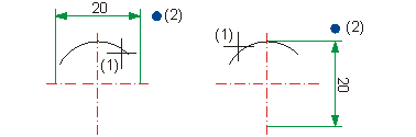 Die Lage der Bemaßung richtet sich nach dem nächstliegenden Pol. Dieser Pol wird durch die Lage des letzten Punktes ausgewählt.