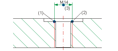 Mit dieser Funktion können Sie Gewinde in der Seitenansicht bemaßen. Das Zeichen für ein metrisches Gewinde M wird automatisch vor das Maß gesetzt. Geben Sie die Gewindeabmeßungen an, und bestimmen Sie einen Punkt für die Lage der Maßlinie.