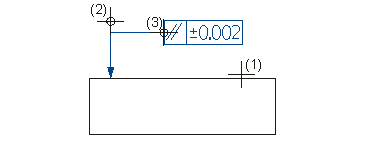 (1) Bezugslinie für Anfangspunkt, (2) Bezugspunkt für Linie, (3) Lage des Toleranzrahmens |