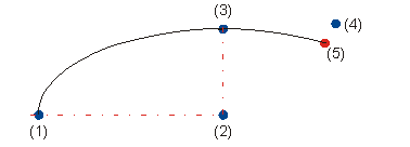 Der Ellipsenbogen ist durch die ersten drei Punkte eindeutig bestimmt. Der angegebene Endpunkt wird projiziert und der modifizierte Endpunkt verwendet. Es werden die möglichen Ellipsenbögen angeboten; mit dem positiv orientierten wird begonnen.
