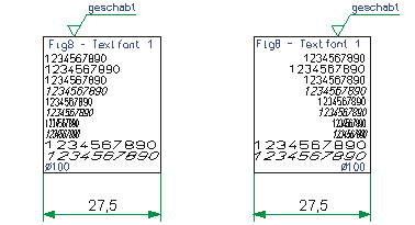Bei Texten wird der Bezugspunkt gespiegelt. Bei Symbolen und Bemaßungen werden nur die Linienelemente gespiegelt. Die Lage der Maßzahl und des Textes bleibt erhalten.
