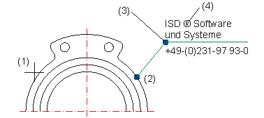 2D-Bemaßung + Text > Text > Text mit Hinweislinie ![]()