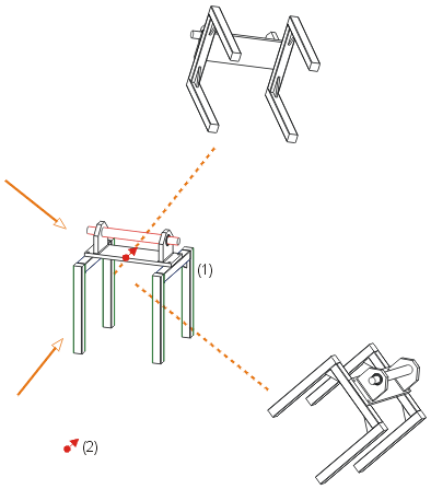 (1) Aktuelle Ansicht, (2) Betrachtungsrichtung