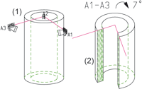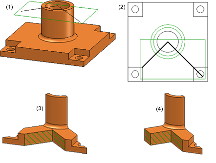Schnittansichten lassen sich in HiCAD in den verschiedensten Ausführungen erzeugen, beispielsweise aufgeklappt, mit seitlicher Begrenzung, mit oder ohne Kennzeichnung des Schnittverlaufes und anderes mehr. Basis für den Schnittverlauf ist eine Skizze.