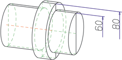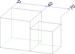 Neues Stufenmaß erzeugen erzeugt eine Maßgruppe, bei der alle Teilmaße denselben Anfangspunkt und die Maßlinien der Teilmaße einen festen Abstand voneinander haben. Die Maße sind achsparallel. |