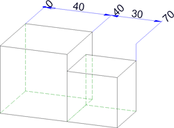 Neues Bezugs-Kettenmaß erzeugen erzeugt eine Kombination von Bezugs- und Kettenmaß. Die Maße sind achsparallel. |