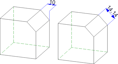 Links: Streckenmaß, achsparallel Rechts: Streckenmaß, frei
