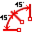 Bezugsmaß erzeugt ein Bezugsmaß, d.h. eine Gruppe von Winkelmaßen, bei dem sich alle Teilmaße auf denselben Anfangsschenkel beziehen. Die Maßzahlen werden hier automatisch am Ende jeder Maßeinheit senkrecht zur Maßlinie gesetzt. |