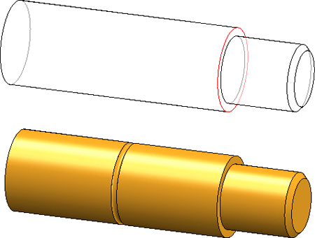 Oben: Welle mit Einbaukanten, Unten: Eingebaute Wellennut, Einbauposition ist der Mittelpunkt zwischen Basis- und Deckfläche des linken Zylinders