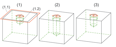 In verschiedenen Fällen – z.B. beim Einbau eines Sacklochs in ein Gewinde o.ä. – ist für die Bohrtiefe die Angabe einer Bezugsebene möglich. Sie können wählen zwischen