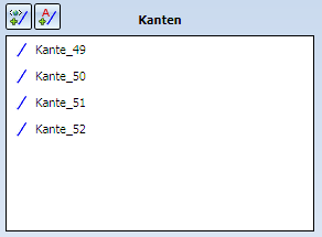 und identifizieren Sie die Kanten mit dem Cursor. Diese werden in die Kantenliste des Dialogfensters übernommen. Sie beenden die Kantenauswahl mit der rechten Maustaste.