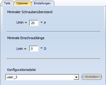 Häufig benötige Schraubenverbindungen lassen sich über diese Registerkarte konfigurieren und in der auf der Registerkarte Optionen gewählten Konfigurationsdatei speichern.