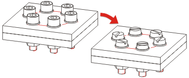 Mit dieser Funktion ändern Sie die Einbauposition von Normteilen, Normbearbeitungen und Verschraubungen sowie die Anordnung von Normteilbildern, die auf einem Raster eingebaut wurden.