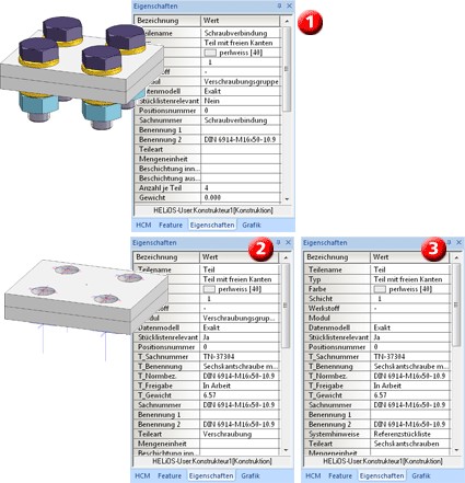 Handelt es sich um eine Verschraubung, dann wird diese als Nebenteil SCHRAUBVERBINDUNG dem aktiven Teil zugeordnet. Das Nebenteil SCHRAUBVERBINDUNG besteht seinerseits aus verschiedenen Nebenteilen wie Schrauben oder Unterlegscheiben. (siehe auch Zusatzteile)