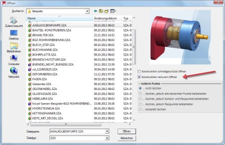 Ob die Datenreduktion verwendet wird, hängt von den Optionen beim Öffnen der Konstruktion ab.