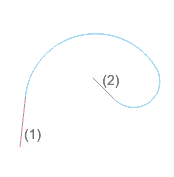 Bogen, P/LE-P/LE-P/LE (keine freien Punkte) erzeugt einen Bogen tangential an drei Kanten oder Punkte. |