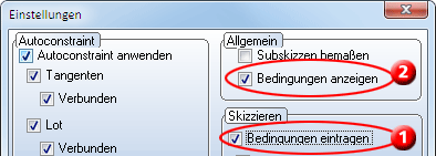 (2) Diese Checkbox muss aktiv sein, wenn die Bedingungen in der Konstruktion angezeigt werden soll. Normalerweise ist dies die Defaulteinstellung.