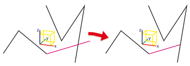 Mit dieser Funktion löschen Sie den Abschnitt eines Linienelementes bis zum nächstliegenden Schnittpunkt mit einem anderen Linienelement. Allerdings werden die Linienelemente hier zunächst in die aktuelle Bearbeitungsebene projiziert. Dort werden die Schnittpunkte bestimmt. Diese werden auf die Originalkante zurückprojiziert und das Teilstück wird entfernt. Im Fall von Kreisen und Ellipsen, die auf eine Strecke projiziert werden, werden evtl. mehrere Teilstücke entfernt.