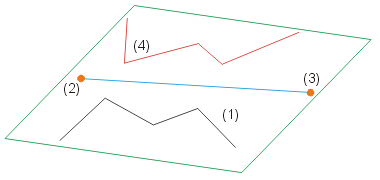 Linienzug spiegeln, an 2 Punkten spiegelt komplette Linienzüge der aktiven Skizze an einer durch 2 Punkte bestimmten Spiegelungsachse |