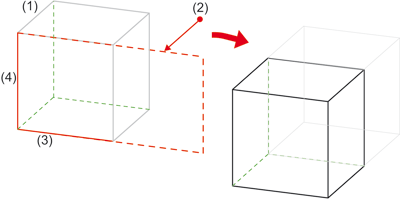 Der Vektoranfang liegt in dem Kantenende, das dichter am 1. Identifizierungspunkt liegt. Der Vektor steht senkrecht auf der gewählten Fläche. |