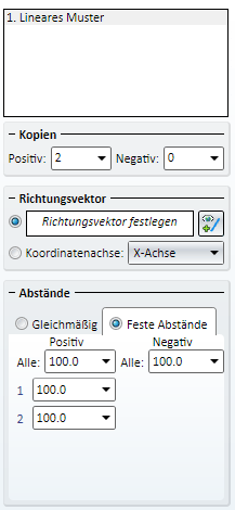 Lineares Muster Die Kopien werden hier durch Angabe eines Richtungsvektors erzeugt. Kopien