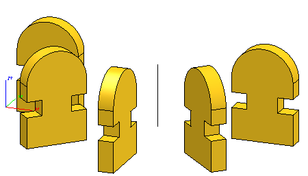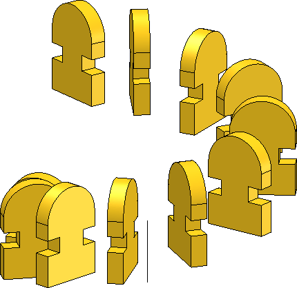 Das Original und seine Wiederholungen werden zu einem Teil zusammengefasst. Name des Teils ist der Name des Originals. Diese Option ist bei Teilen mit freien Kanten, Skizzen, Teilen mit isolierten Punkten, Teilen mit freien Flächen, Baugruppen und Teilelisten (Mehrfachauswahl) nicht aktiv.