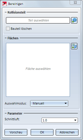 und identifizieren Sie das Durchdringungsteil. Haben Sie ein Teil ausgewählt, dann erscheint anstelle der Meldung Teil auswählen der Text Kollisionsteil.