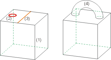 (1) Ausgangsbauteil, (2) Skizze,  (3) Drehachse, (4) angefügtes Teil (Vollrotation)