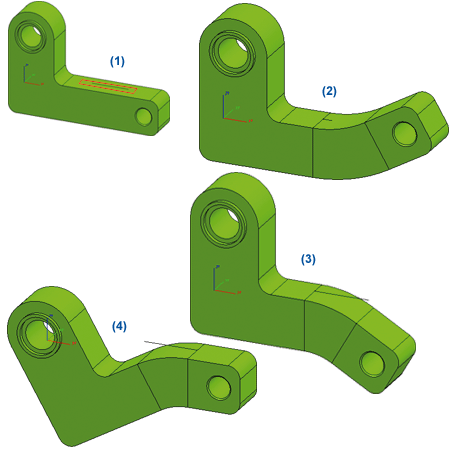 Mit dieser Funktion lassen sich 3D-Teile entlang einer vorhandenen Skizze deformieren. Es stehen vier Arten der Deformation zur Verfügung: