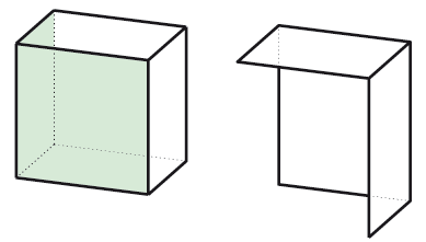Links: Ausgangsteil mit gewählten Flächen, Rechts: Zielteil