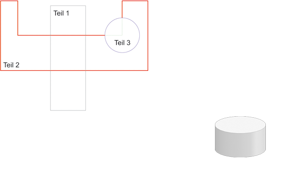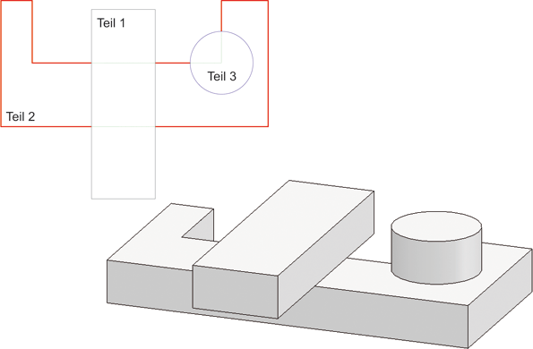 Die Abbildung zeigt nochmals die obigen 2D-Teile. Teil 2 wird jetzt aber nicht von Teil 1 verdeckt.