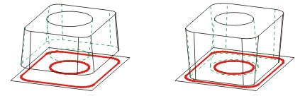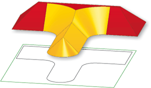 Hervorzuheben ist die automatische Behandlung von Selbstschnitten. Die Abbildung zeigt ein aus einer Skizze abgeleitetes Translationsteil mit Selbstschnittbehandlung. Die "schrägen" Flächen sind als Formschrägen des Translationsteils mit einem bestimmten Winkel entstanden. Die anderen, markierten Flächen würden ohne Behandlung "Selbstschnitte" enthalten. Mit Selbstschnittbehandlung enden sie weit unter der Deckfläche und werden ggf. durch (Schnitt-)Kanten bis zur Deckfläche fortgesetzt.