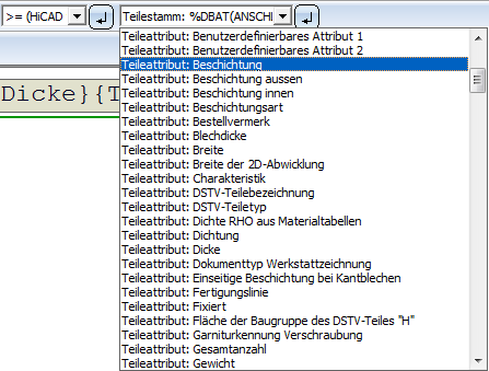 HiCAD-Teileattribute sowie HELiOS Teilestammattribute lassen sich direkt im Beschriftungseditor in der rechten Listbox auswählen.