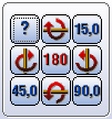 Mit den blau gefärbten Icons stellen Sie die Schrittweite für die Drehung ein: 15, 45 oder 90 Grad oder eine beliebige andere Schrittweite. Mit den rot gefärbten Icons erfolgt die Drehung um die aktuelle Schrittweite nach oben, unten, links oder rechts. |
