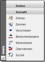 Die aktive Ansicht lässt sich direkt mit der Maus drehen, verschieben oder zoomen. Dies kann mit und ohne Angabe eines 3D-Drehpunktes erfolgen.