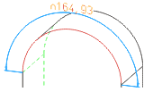 Bogenmaß ermittelt das Bogenmaß zwischen Anfangs- und Endpunkt eines Bogens. Die Maßhilfslinien liegen parallel zur gedachten Winkelhalbierenden des Kreissektors und beginnen an den Bogenendpunkten. Maßlinie und Bogen sind konzentrisch. |