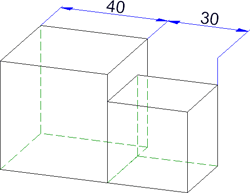 Neues Kettenmaß erzeugen erzeugt eine Maßgruppe, bei der je zwei aufeinander folgende Teilmaße einen gemeinsamen Maßpunkt haben. Die Maße sind achsparallel. |
