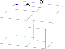 Neues Stufenmaß erzeugen erzeugt eine Maßgruppe, bei der alle Teilmaße denselben Anfangspunkt und die Maßlinien der Teilmaße einen festen Abstand voneinander haben. Die Maße sind achsparallel. |