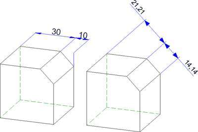 Mit dieser Funktion erzeugen Sie Streckeneinzelmaße oder -maßgruppen, deren Maßlinien parallel zu einer der Achsen des aktiven Koordinatensystems oder zu einer frei wählbaren Bezugsachse verlaufen .