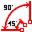 Bezugsmaß erzeugt ein Bezugsmaß, d.h. eine Gruppe von Winkelmaßen, bei dem sich alle Teilmaße auf denselben Anfangsschenkel beziehen. Die Maßzahlen werden hier automatisch am Ende jeder Maßeinheit senkrecht zur Maßlinie gesetzt. |