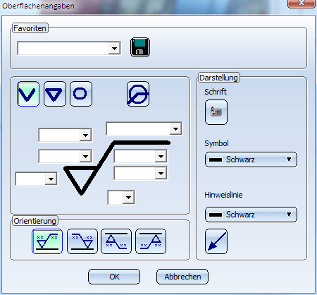 das Fenster mit OK. Nun wird das Oberflächensymbol platziert.