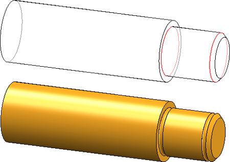 Oben: Welle mit Einbaukanten, Unten: Eingebaute Wellennut, Einbauposition ist der Mittelpunkt zwischen Basis- und Deckfläche des linken Zylinders