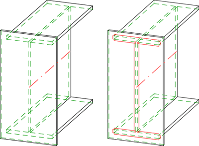 Bei der vereinfachten Darstellung wird am Anfang und Ende der Schweißnaht (bei unterbrochenen Schweißnähten pro Teilnaht) je eine Linie der angegebenen Länge sowie die Verbindung dieser beiden Linien erzeugt.